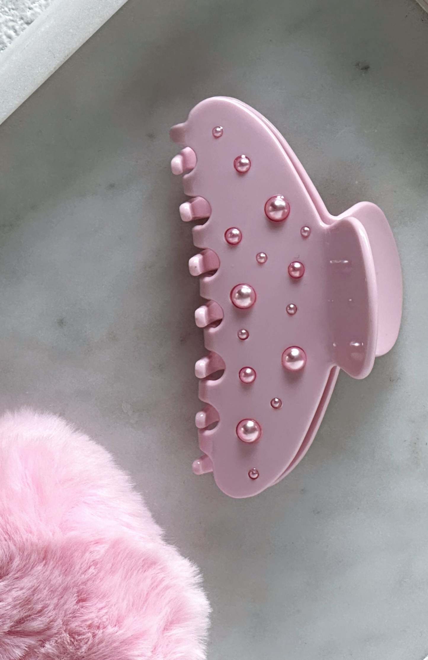 Make your OOTD shine with some extra sparkle! The Fiona Hair Clip Baby Pink features an inner claw to hold hair firmly, gem detailing, unique design and easy spring closure.