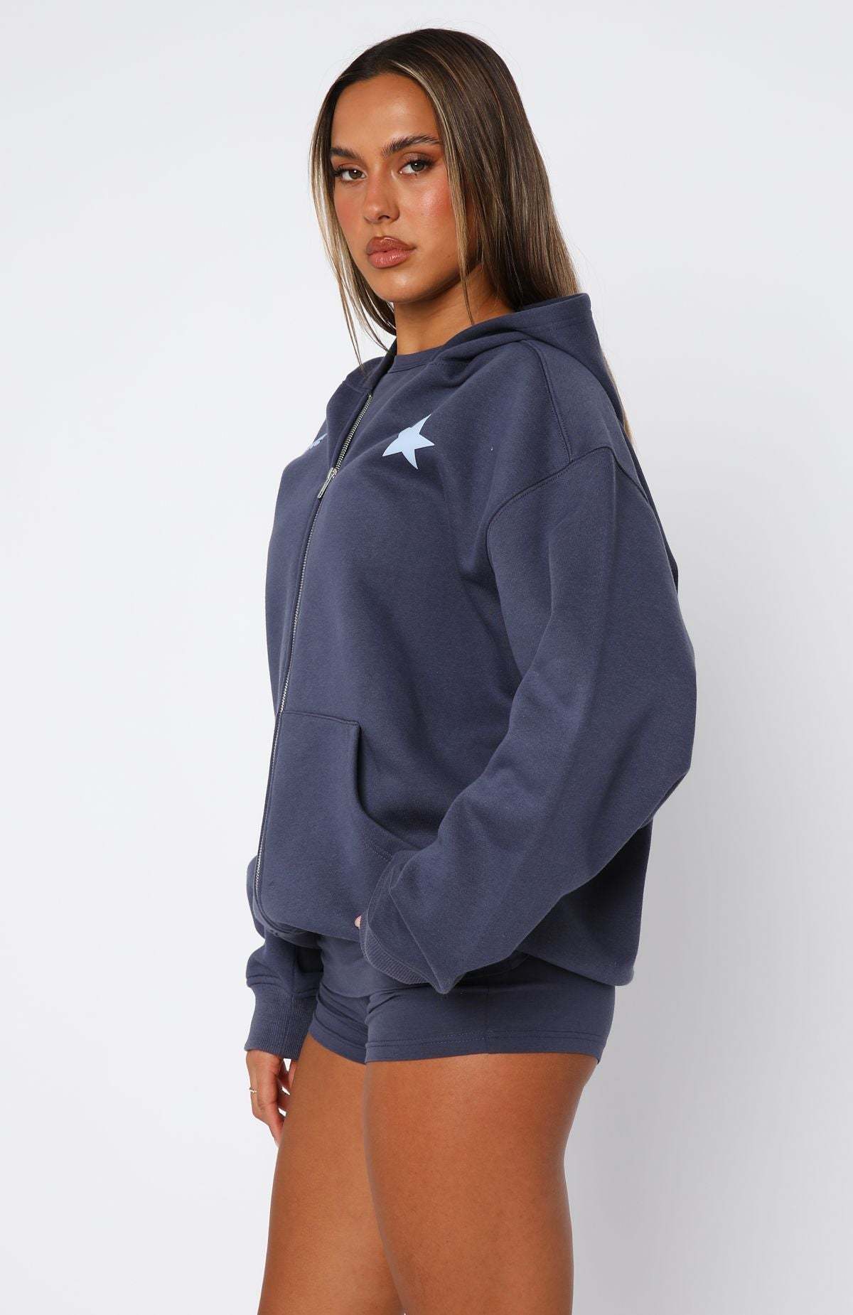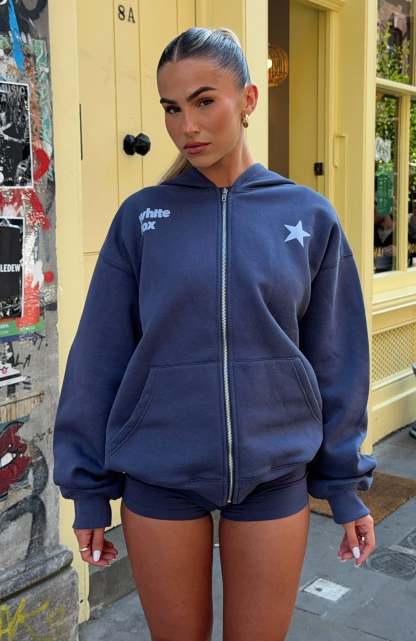 What more could you want from a hoodie? The From The Archives Charli Zip Front Hoodie Navy was tailored just for you. Featuring a centre front zip closure, hood, oversized fit, slouch shoulders, ribbed cuffs and hem, front side and centre back puff print logo detailing and front pocket design. Complete the look with the From The Archives Charli Wide Leg Sweatpants Grey Marle for a look we love!