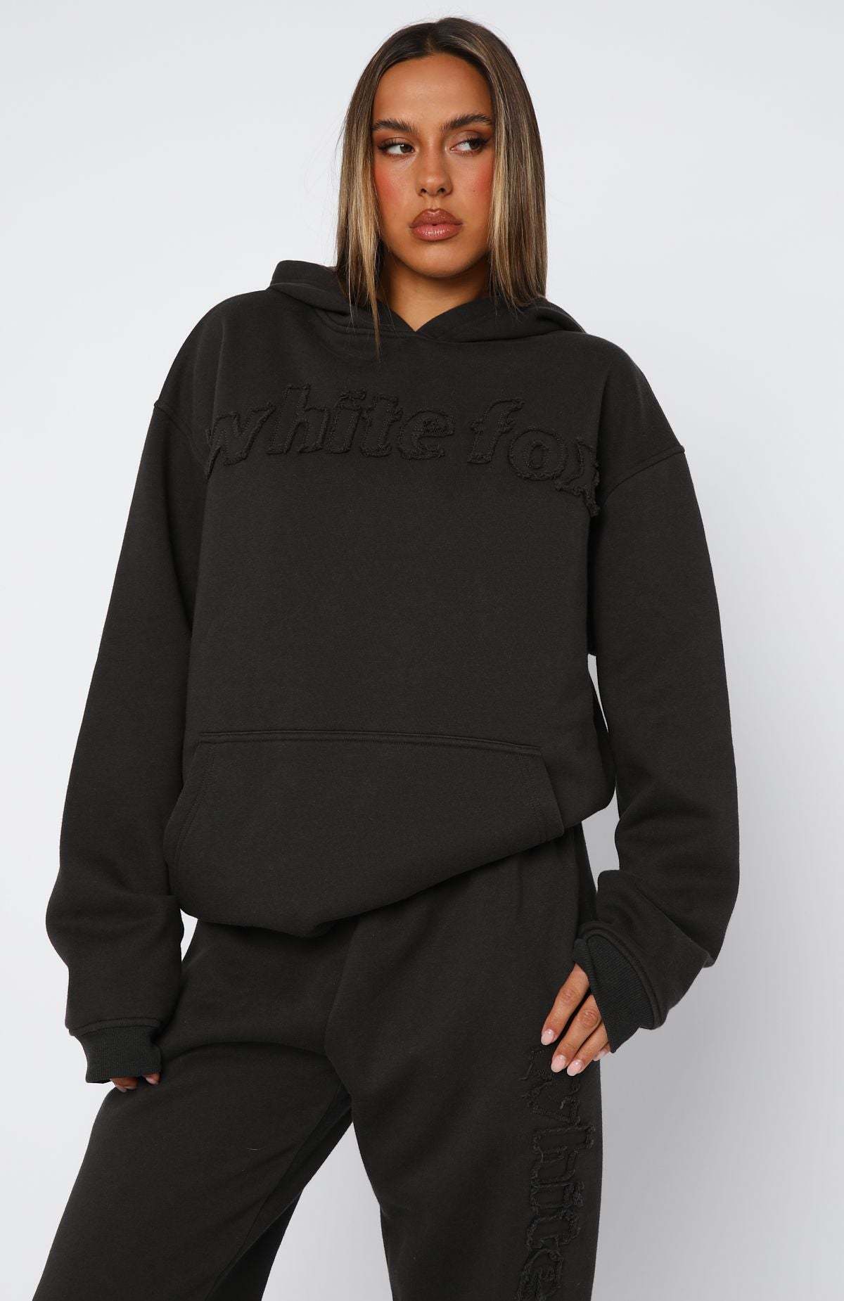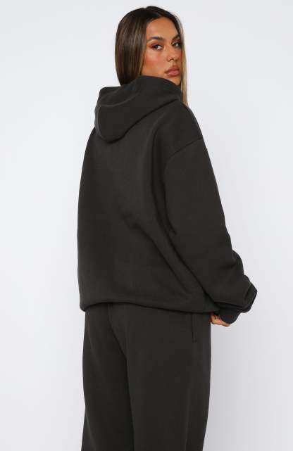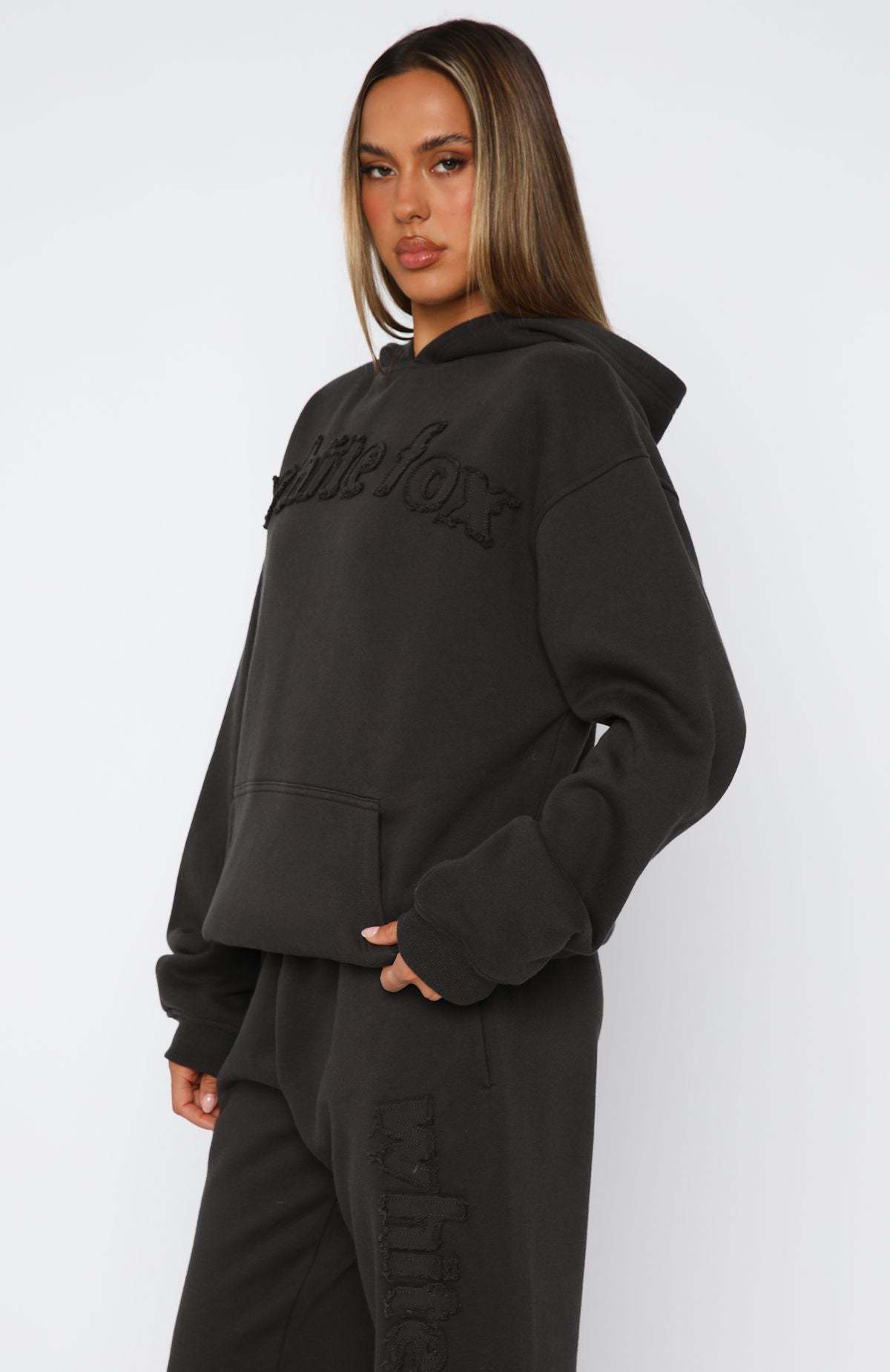 Update your loungewear with the From The Archives Lexi Oversized Hoodie in Charcoal! Features hood, slouched shoulders, long sleeve with ribbed cuff detailing, distressed fabrication text centre front, pocket centre front, ribbed detailing on waistband and fleece lined. Complete the look with the matching From The Archives Lexi Sweatpants in Charcoal or From The Archives Lexi Lounge Shorts in Charcoal.