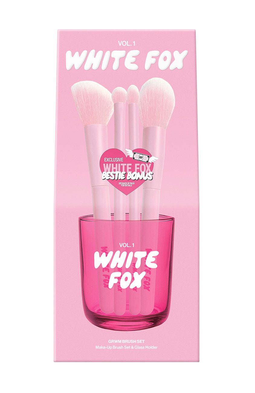 Your go-to for flawless make up-application. The GRWM brush set includes a powder brush, blusher brush, eyeshadow blender and packing eyeshadow brush. Complete with a cute White Fox glass brush holder, elevate your bathroom aesthetic and make up routine with this must-have set.