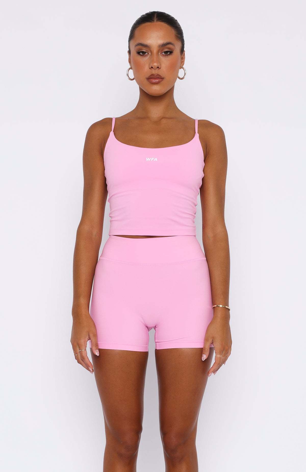 Elevate your gym-drobe with the Keep Up High Waisted Shorts in Baby Pink. These bike shorts are high waisted with a supportive wide waistband and WFA logo centre back of waistband. Pair with one of the matching High Definition Sports Bra or the More Energy Crop for a look we love!