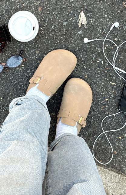 Meet the Penelope Flats in Taupe, your new everyday go-to. Designed with a closed round toe, chic buckle detailing across the front, a sturdy thick sole, and an open round heel for easy slip-on style. Pair them with everything from denim to a relaxed midi for instant wearable polish.