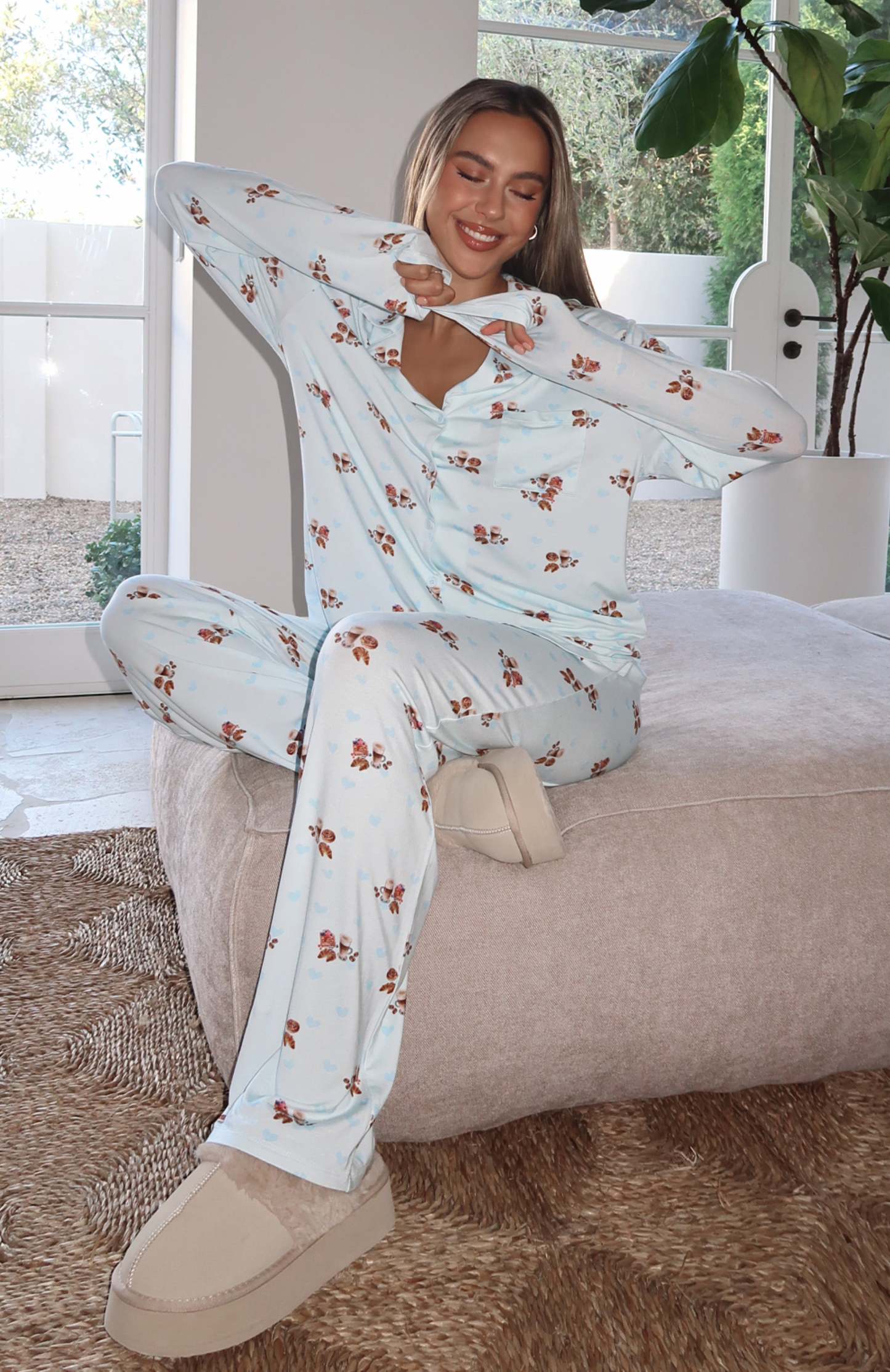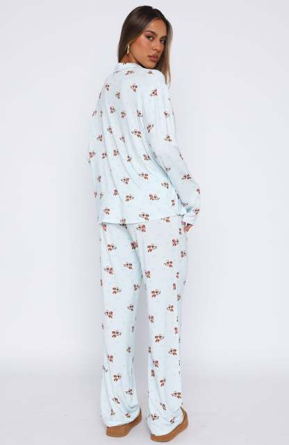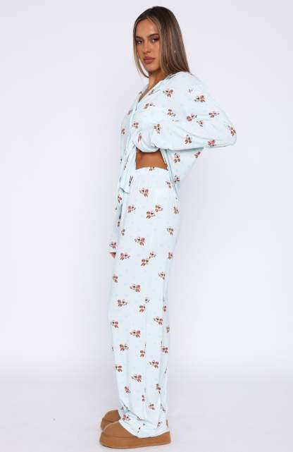 Cosy up in the pyjamas you won't be taking off this winter season! The Pillow Talk Printed Long Sleeve Pyjama Set in Blueberry Breakfast features a high stretch, soft fabric, lapel neckline, long sleeves, front button closure, elasticated waistband and lined fabric. Pair with your go-to uggs and sleep tight!