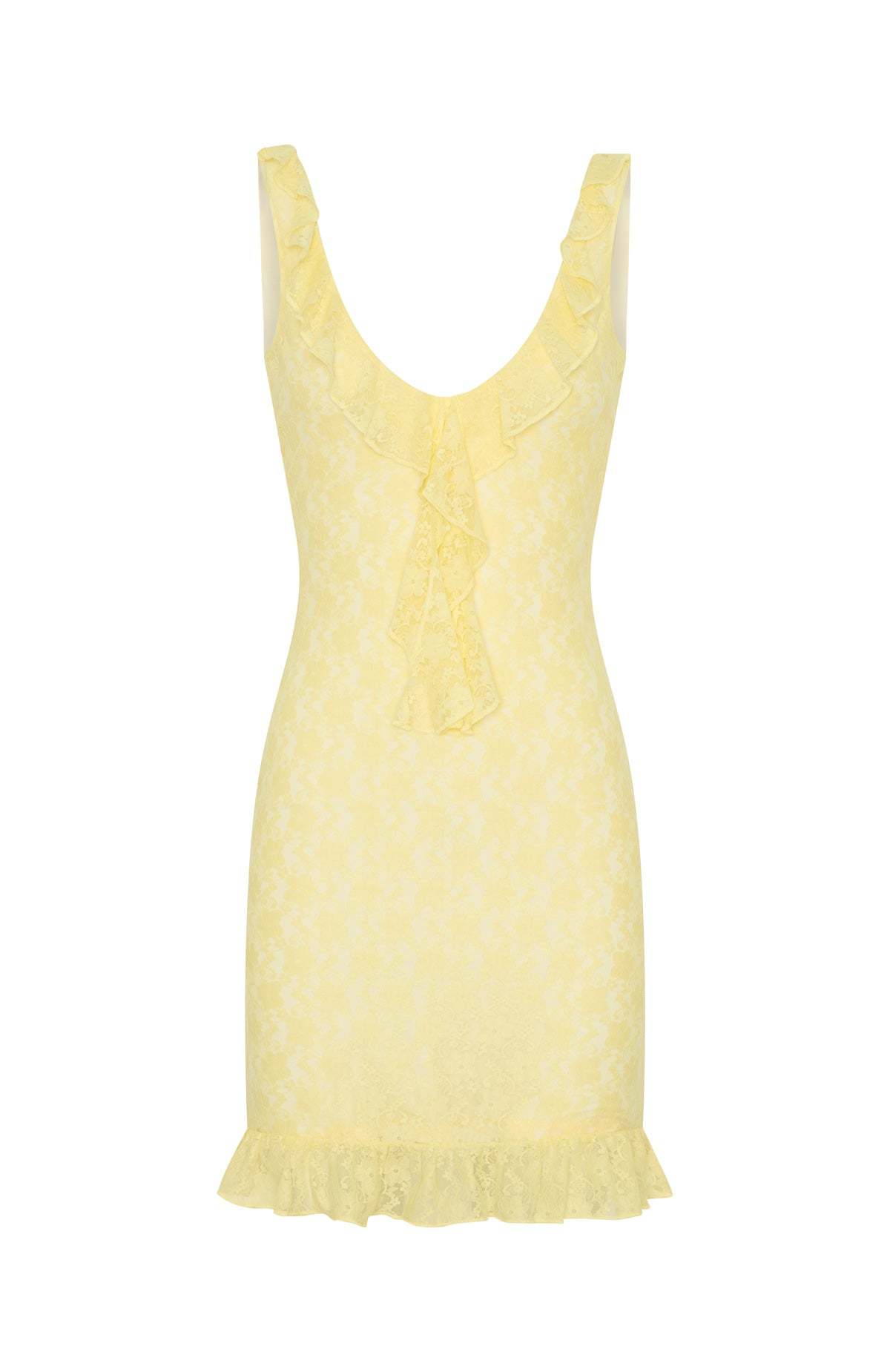 Pretty and perfect is how we would describe the Take A Bow Mini Dress in Lemon. Featuring halter neck, plunge neckline with frill design, lined, stretch lace fabric, frill hem and low back design. We love this paired with gold accessories and strappy heels and let the dress do all the talking!