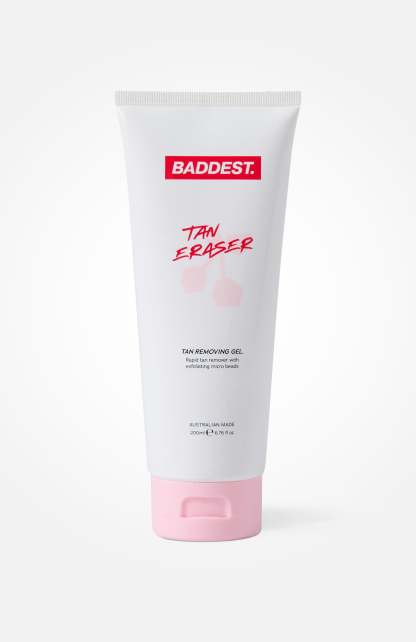 Because baddies move on fast. Prep your skin for the next tan application and effortlessly remove unwanted tan using out BADDEST tan eraser. Uniquely formulated and packed with micro beads for extra exfoliation, watch stubborn tan melt away with ease, leaving your skin soft and ready for a fresh bronze.