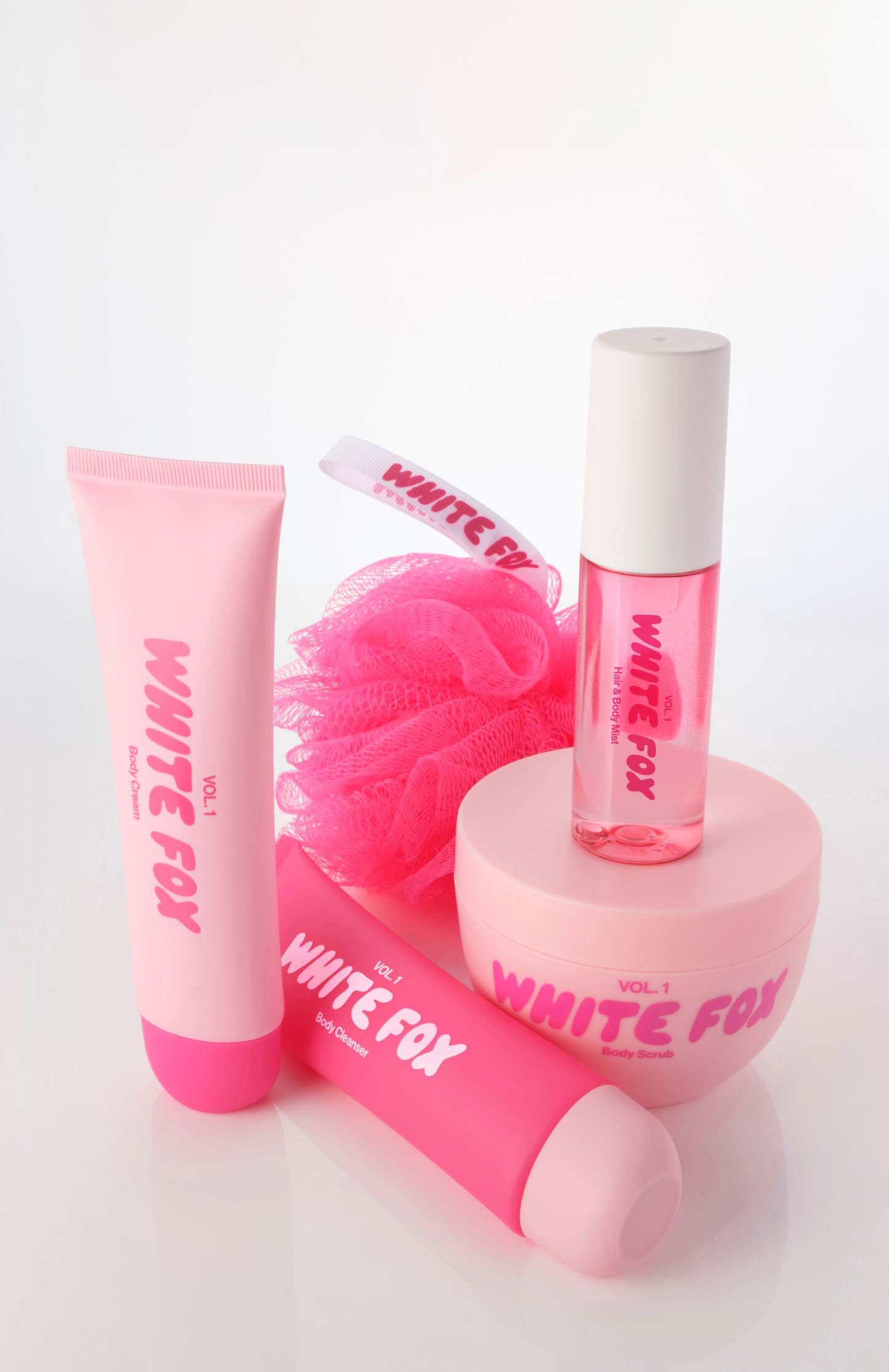 Shower Puff, Body Cleanser, Body Cream, Hair & Body Mist and Body Scrub.