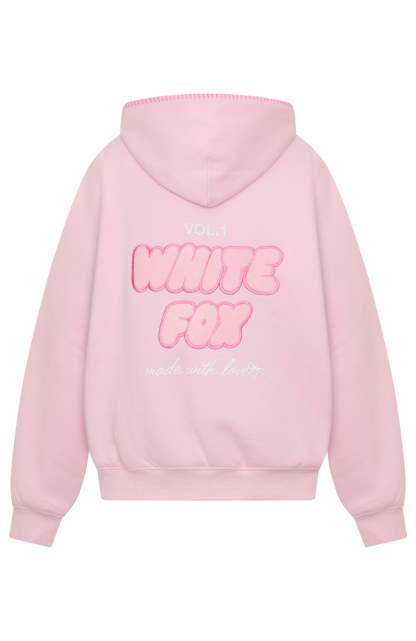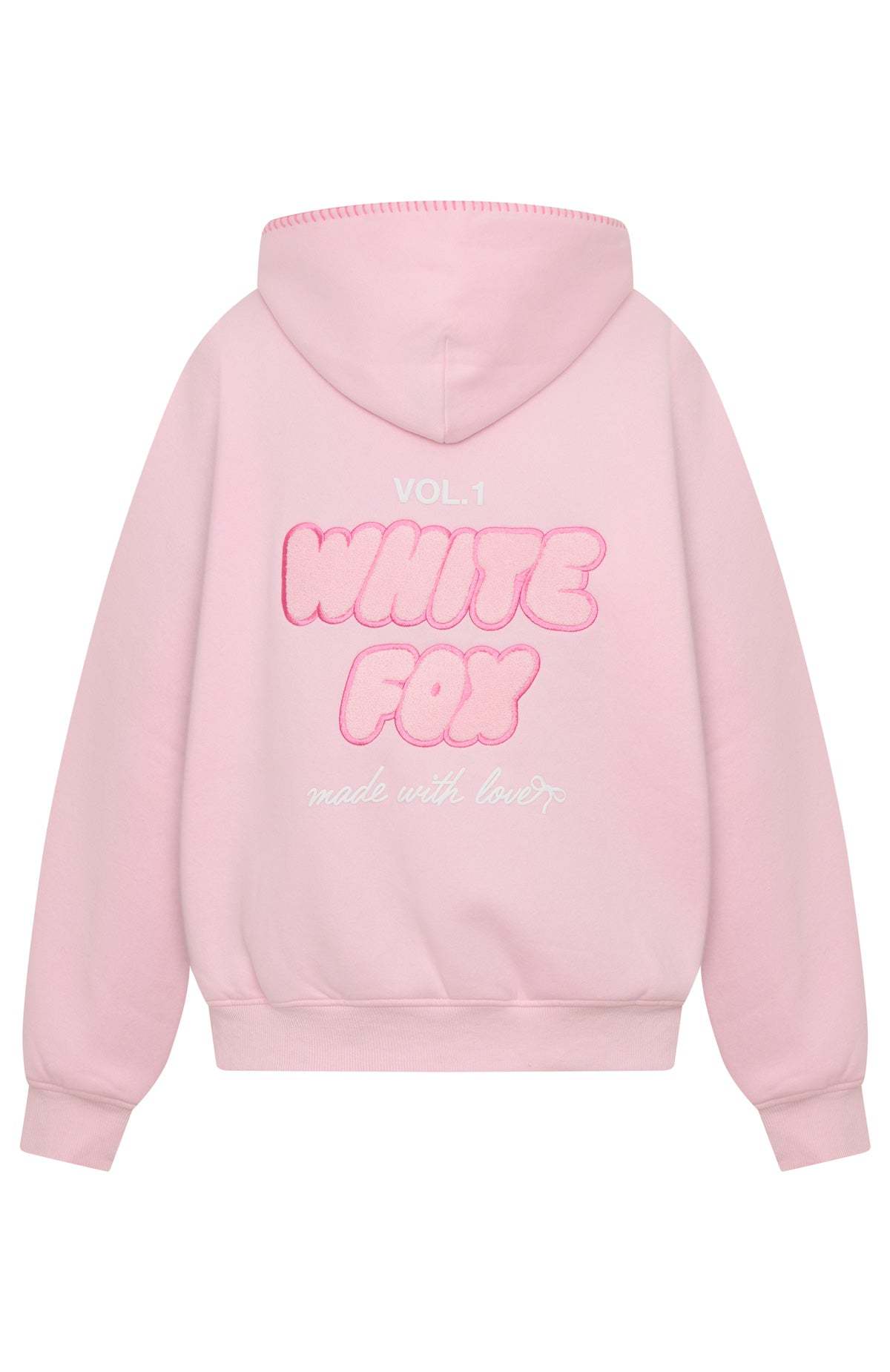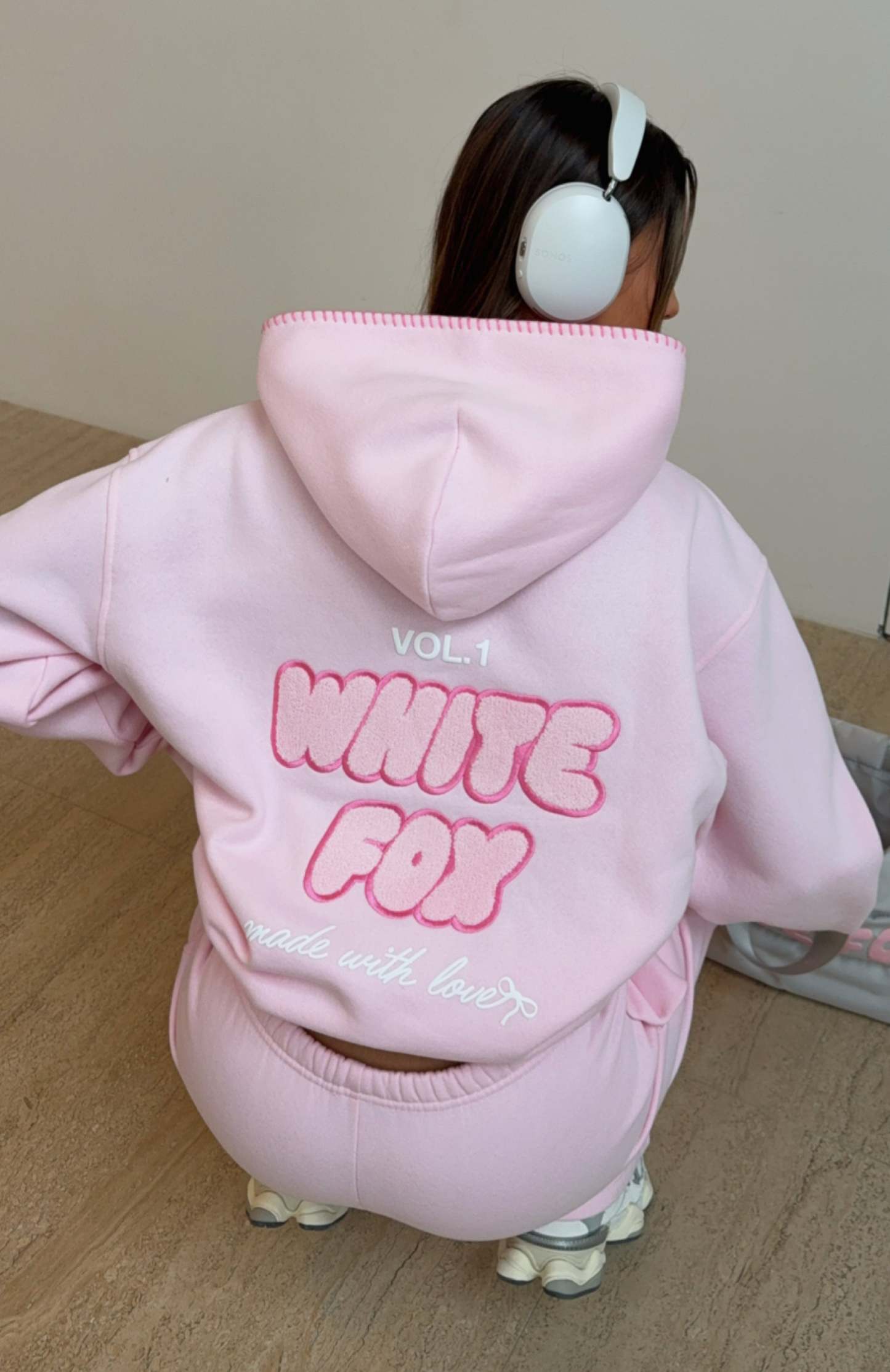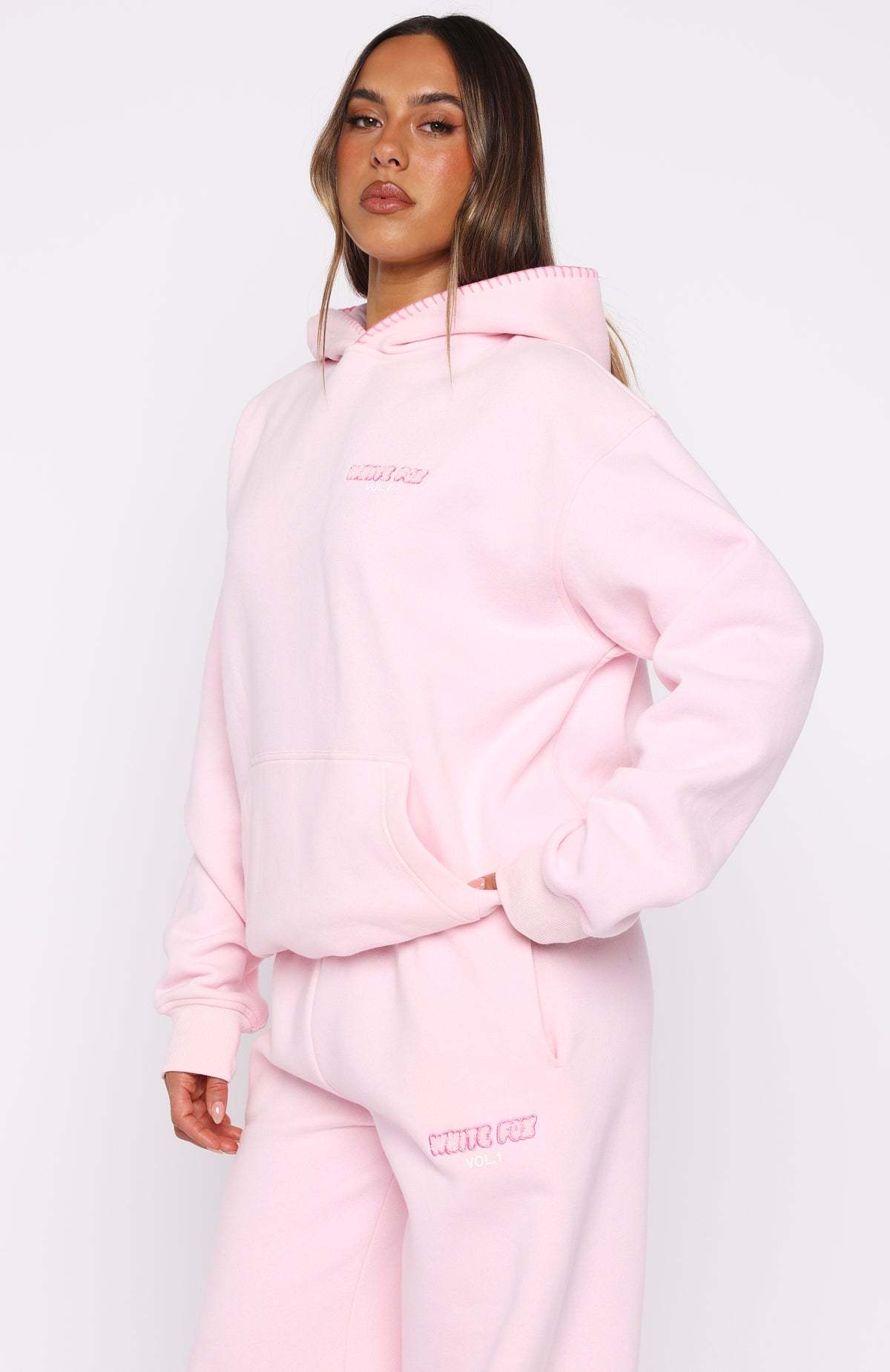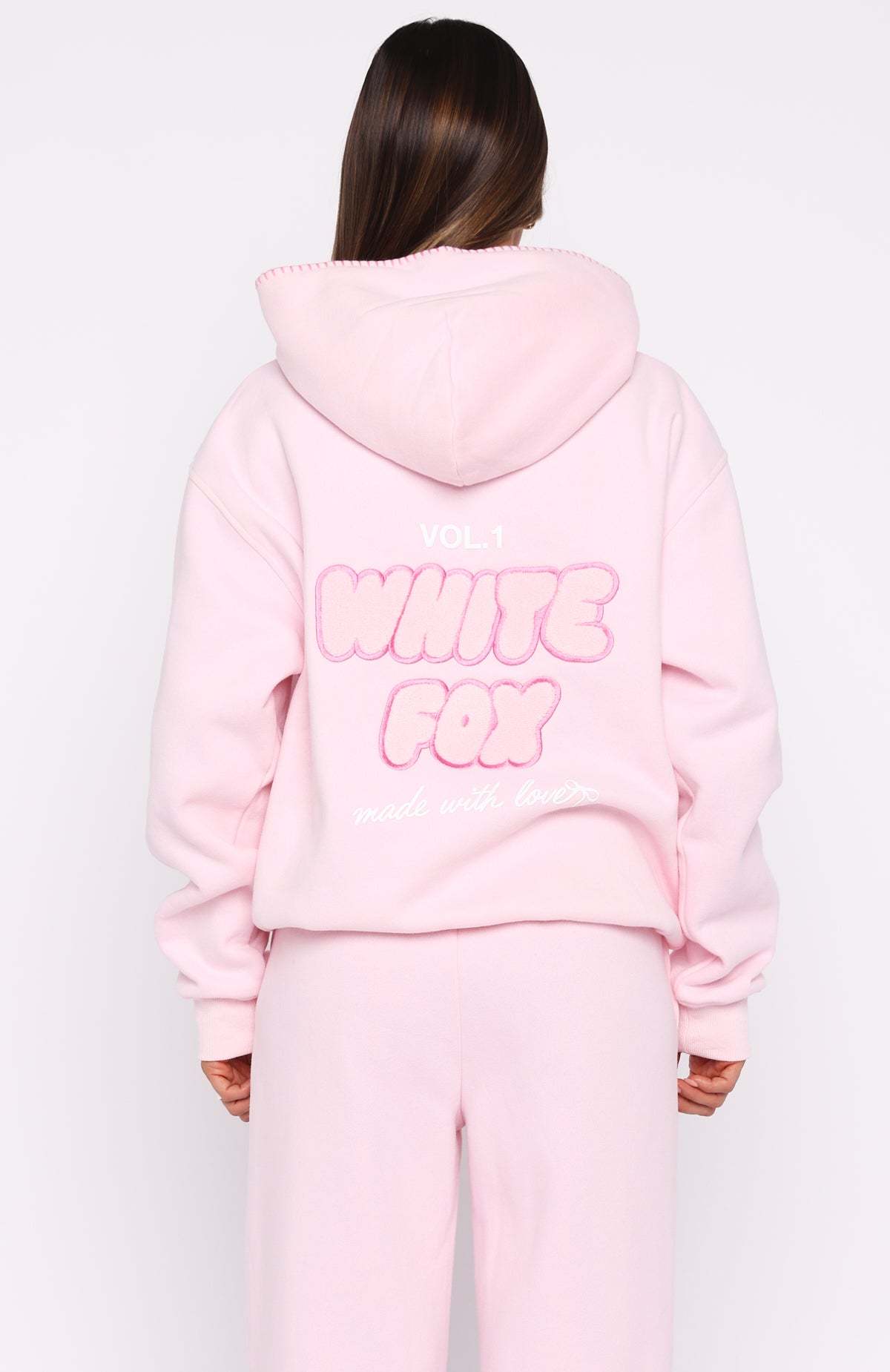 Comfort is an attitude, and this set embodies it. The Vol. 1 Oversized Hoodie Posy features a relaxed hood with exposed stitching, slouched shoulders and ribbed hems, which round out an oversized silhouette. Designed with long sleeves, a roomy front pocket, and a lined fleece interior, this hoodie delivers a cosy feel. White Fox woven text embellishes the side front and back, paired with printed "made with love" text. Style with the matching Vol. 1 Wide Leg Sweatpants Posy.