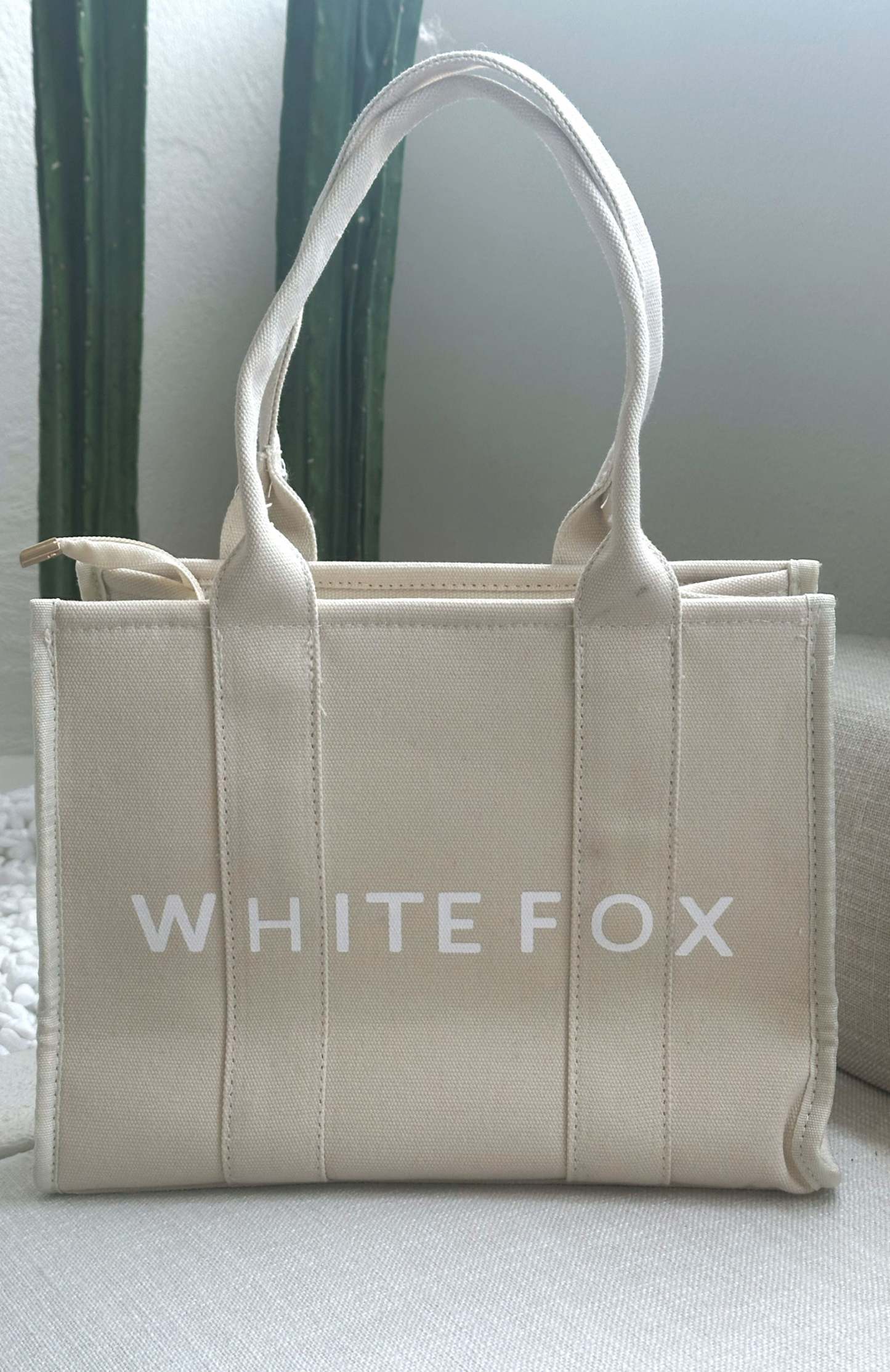 Get ready to feel a lil' stylish with the White Fox Mini Tote Bag Beige. Features a durable and thick fabric, thick straps, zipper closure, canvas fabric, mini size and printed White Fox Logo centre front. Style with your everyday outfit of the day for extra style points.