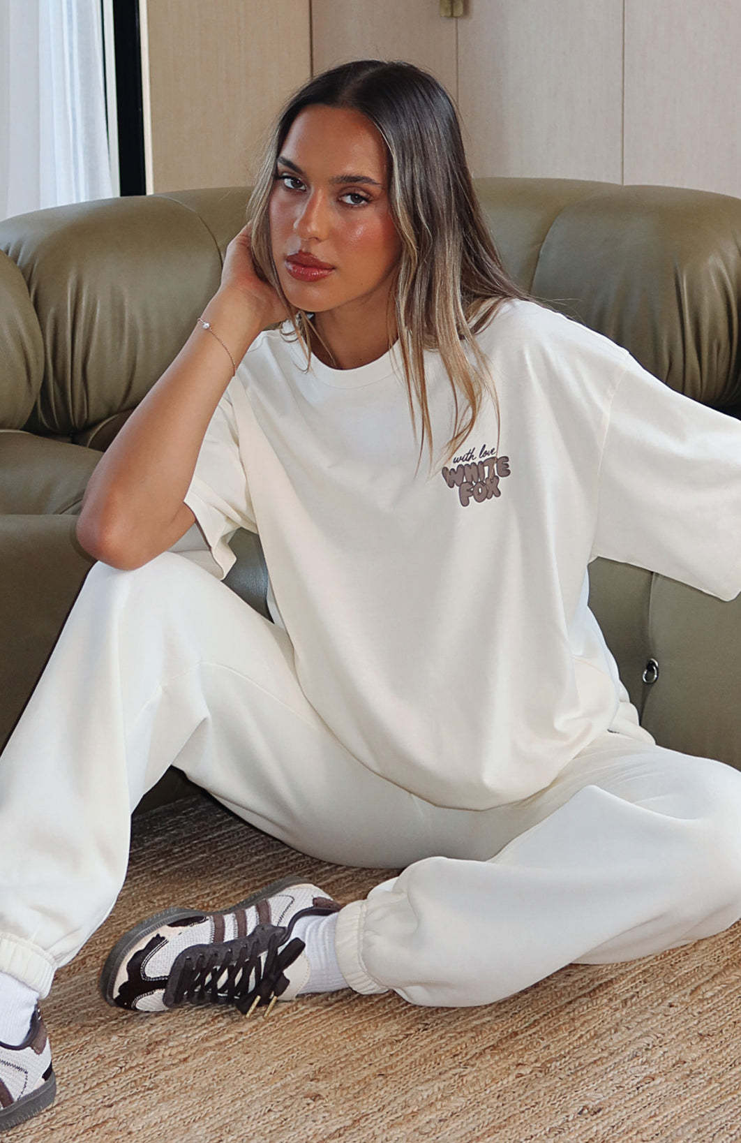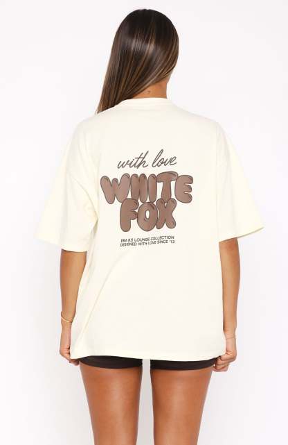 Stay seriously comfy in new, With Love 8.5! The With Love Always Oversized Tee Cream is an easy, wear-everywhere tee! It is an oversized fit with slouch shoulders, round neckline, and a printed logo side front and centre back. We love this paired with our With Love Lounge Shorts for a cosy look we love!