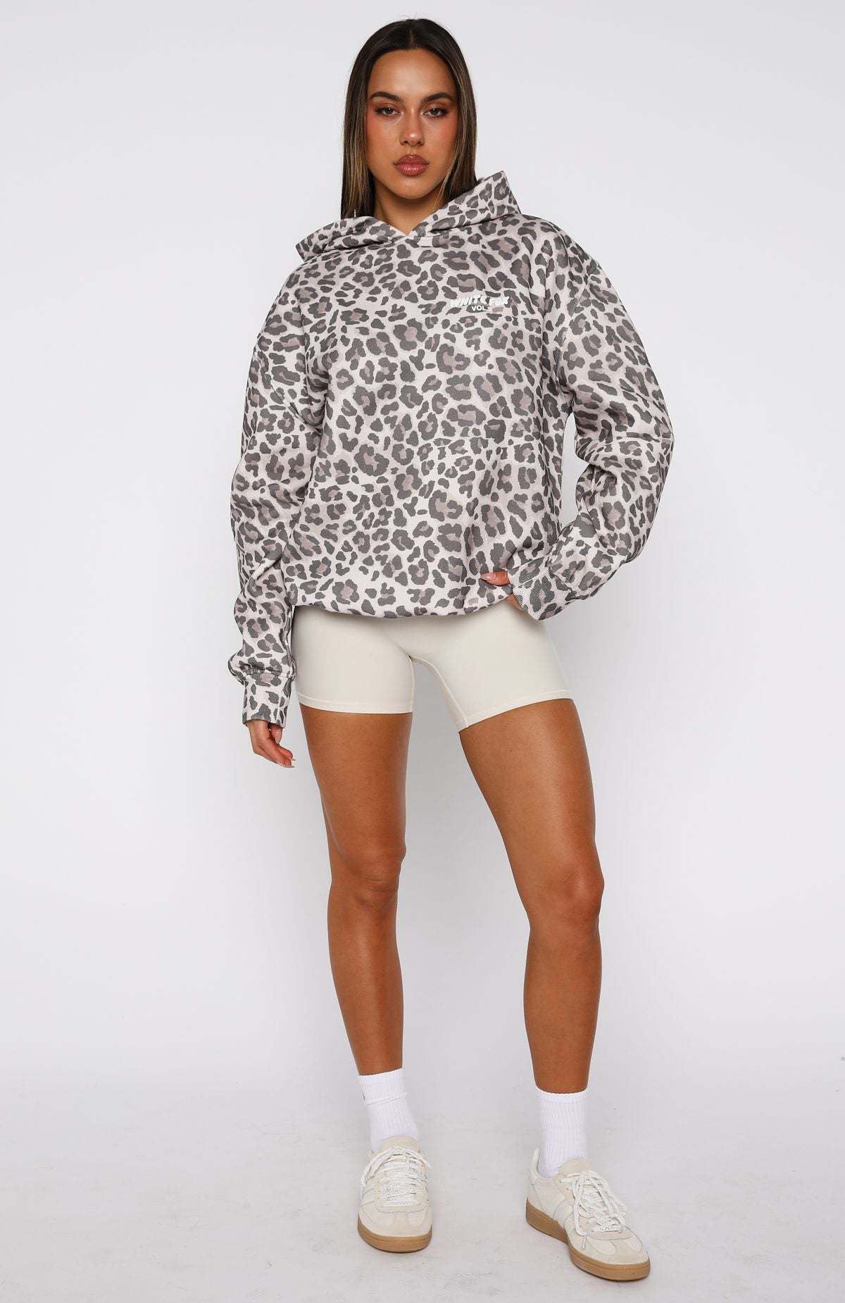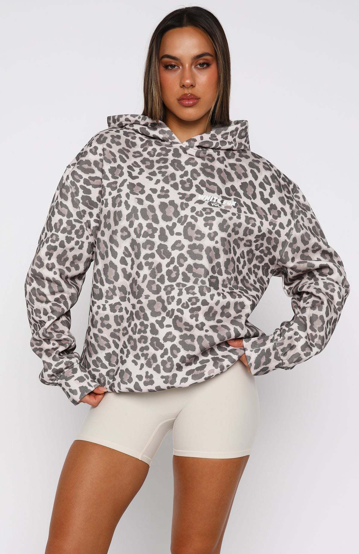 Designed for your downtime! The Offstage Printed Oversized Hoodie in Leopard brings easy comfort with an oversized fit, long sleeves, ribbed cuffs and hem, and a hood. Bold puff‑print White Fox text lands on the side front and centre back for a signature touch. Style it with the matching Offstage Printed Oversized Tee in Leopard and your favourite denim for an effortless, cool combo.