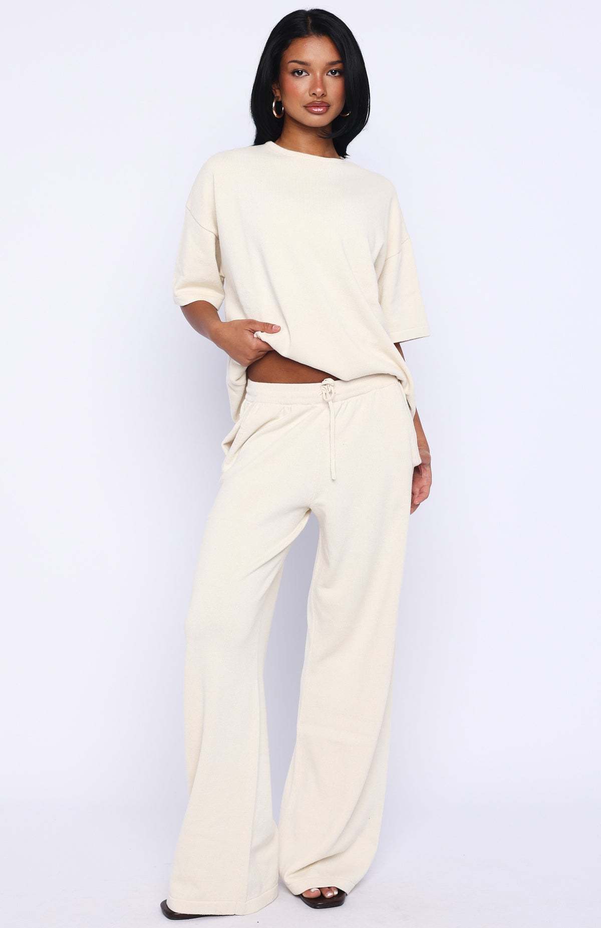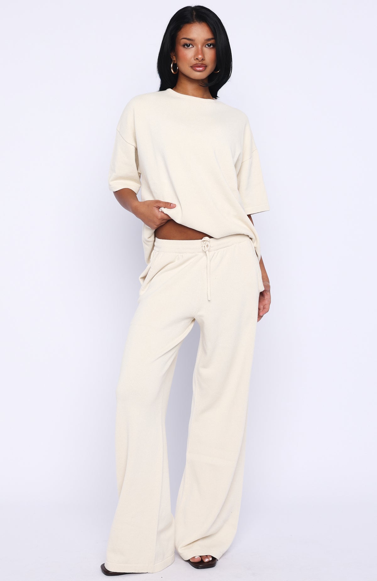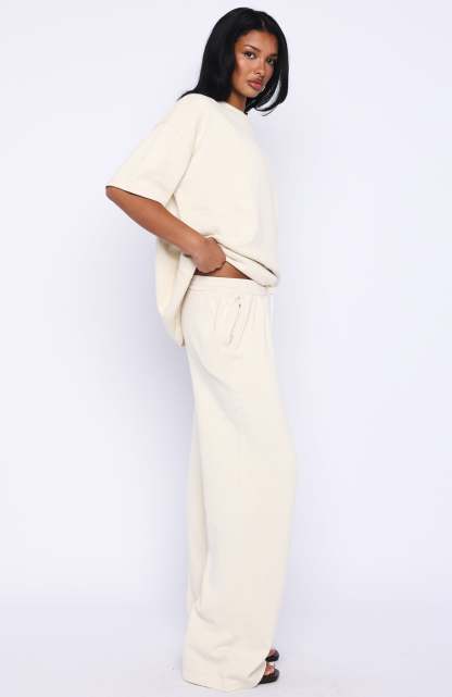 Cosy but make it chic! The Rare Catch Knit Pants in Cream feature a thick elastic waistband with an adjustable drawstring, side pockets and soft knit fabrication in a relaxed wide‑leg silhouette. Style them with the matching Rare Catch Knit Top and sneakers for a laid‑back yet refined look.