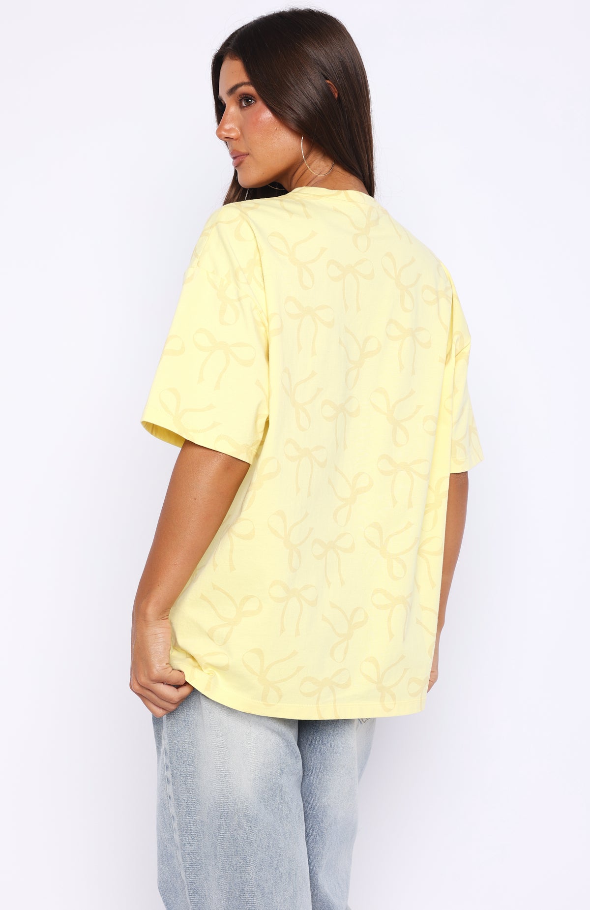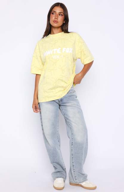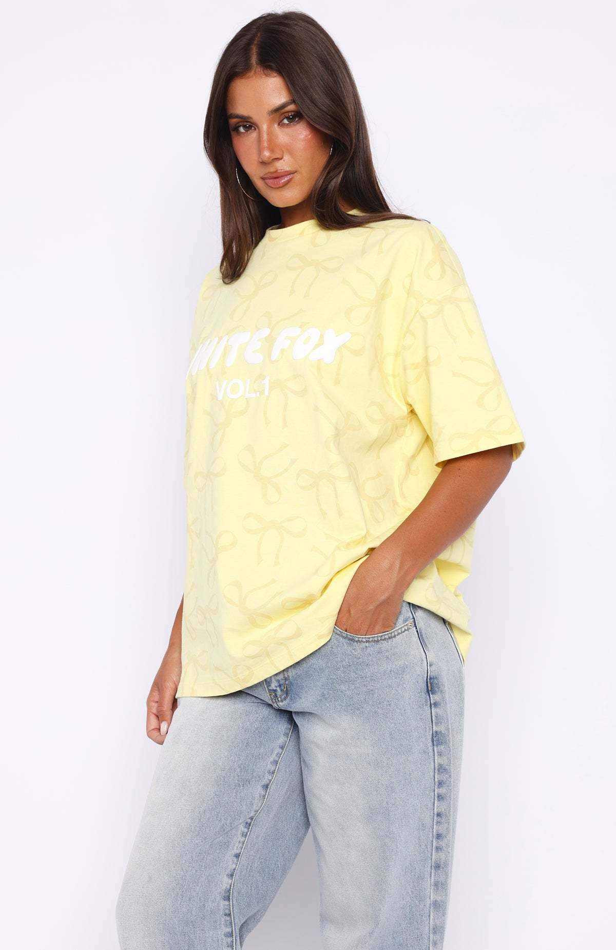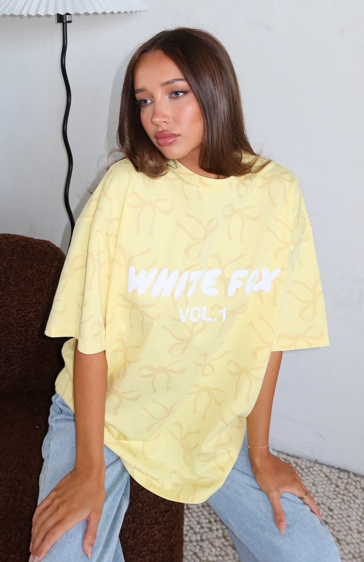 Trending for a reason! The Vol. 1 Oversized Tee Lemon Bow features a classic crew neckline, slouched shoulders, short sleeves and an oversized silhouette with a playful bow print and puff-printed White Fox text at the centre front. Pair it with denim jeans for an effortless, casual look.